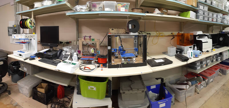 There are currently four working 3D printers at VHS. Three of them are filament based, while one is resin based. Training or evidence of competency is required to use any of them. They are connected to a computer on bench E. This computer is to be used only for 3D printing, and is available to anyone who has completed the 3D printer training course.