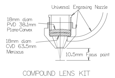 This compound lens was designed by YouTuber RDWorks. They have a very nice video outlining in depth information about engraving using this compound lens. https://youtu.be/ZG5KsMw8fJY?si=mj3bWv7gRNXFy1x2